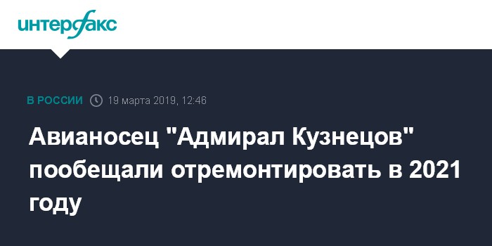Ранее Рахманов сообщал, что "Адмирал Кузнецов" будет отремонтирован к концу 2020 года и вернется в состав ВМФ РФ в 2021 году.
