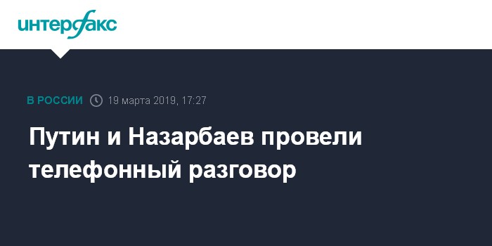 Москва. 19 марта. INTERFAX.RU - В Кремле подтвердили факт телефонного разговора во вторник президента РФ Владимира Путина и президента Казахстана Нурсултана Назарбаева.