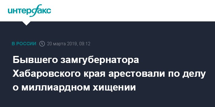 Бывшего замгубернатора Хабаровского края арестовали по делу о миллиардном хищении