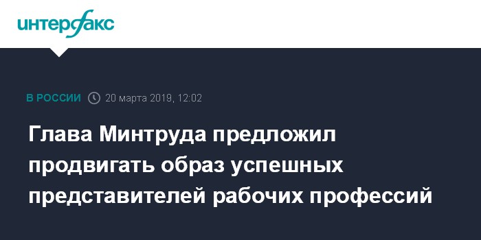 Москва. 20 марта. INTERFAX.RU - Министр труда и соцзащиты Максим Топилин в ходе "правительственного часа" в Госдуме поддержал идею продвижения образа успешного специалиста рабочей профессии.