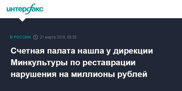 Счетная палата нашла у дирекции Минкультуры по реставрации нарушения на миллионы рублей