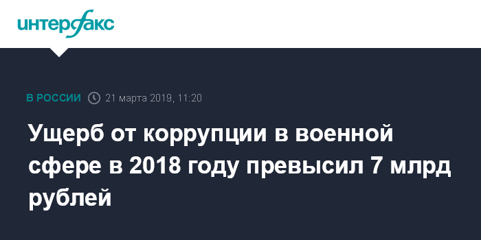 Ущерб от коррупции в военной сфере в 2018 году превысил 7 млрд рублей