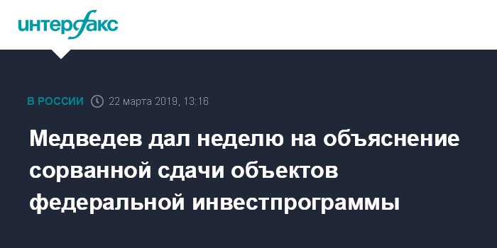 Медведев дал неделю на объяснение сорванной сдачи объектов федеральной инвестпрограммы