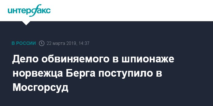 Дело обвиняемого в шпионаже норвежца Берга поступило в Мосгорсуд