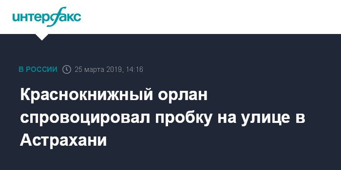Москва. 25 марта. INTERFAX.RU - Орлан-белохвост с поврежденным крылом в понедельник днем гулял по улицам в Астрахани и спровоцировал пробку на дороге, остановив движение, сообщают очевидцы в социальных сетях в понедельник.
