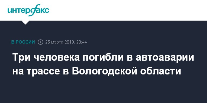 Три человека погибли в автоаварии на трассе в Вологодской области