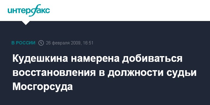 Москва. 26 февраля. INTERFAX.RU - Судья Мосгорсуда Ольга Кудешкина, лишение статуса которой Европейский суд по правам человека (ЕСПЧ) признал незаконным, намерена возобновить процесс восстановления своего судейского статуса.