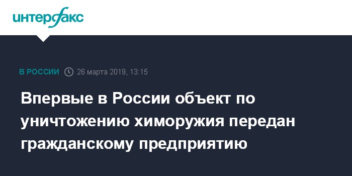 Впервые в России объект по уничтожению химоружия передан гражданскому предприятию