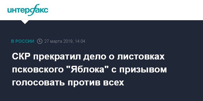 СКР прекратил дело о листовках псковского "Яблока" с призывом голосовать против всех