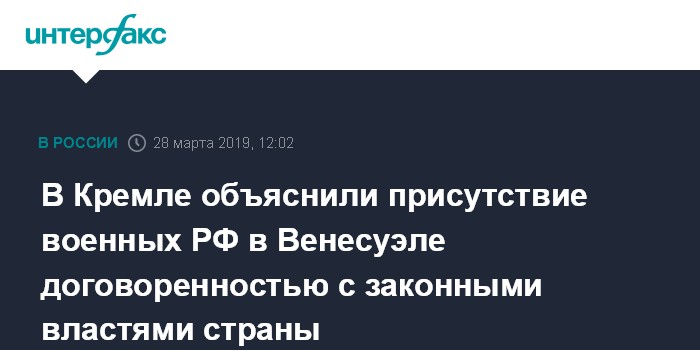 В Кремле объяснили присутствие военных РФ в Венесуэле договоренностью с законными властями страны