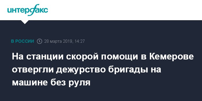 На станции скорой помощи в Кемерове отвергли дежурство бригады на машине без руля