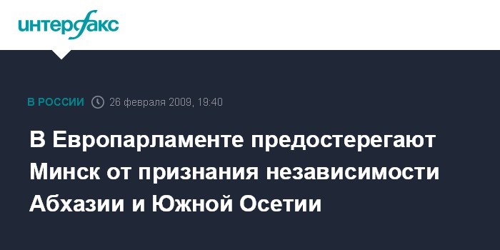 Брюссель. 26 февраля. ИНТЕРФАКС - В Европарламенте считают, что признание Минском независимости Абхазии и Южной Осетии станет препятствием для включения Белоруссии в новую программу ЕС для стран Восточной Европы и Южного Кавказа "Восточное партнерство".