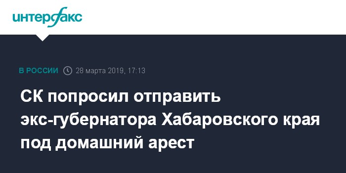СК попросил отправить экс-губернатора Хабаровского края под домашний арест