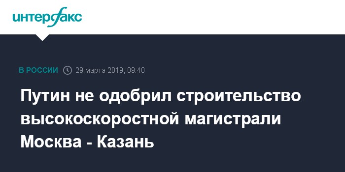 Путин не одобрил строительство высокоскоростной магистрали Москва - Казань