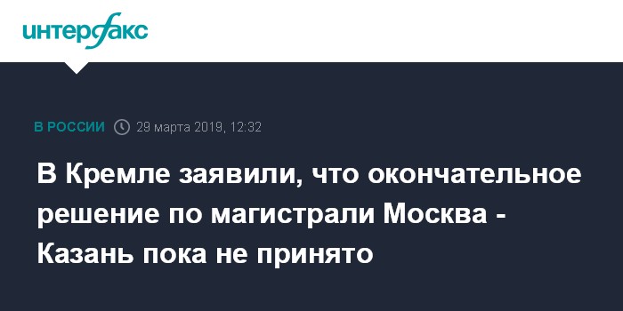 В Кремле заявили, что окончательное решение по магистрали Москва - Казань пока не принято