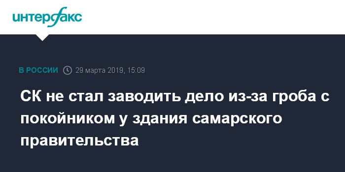 Москва. 29 марта. INTERFAX.RU - В Самаре не стали заводить уголовное дело на женщину, выставившую гроб с телом покойного мужа у здания регионального правительства.