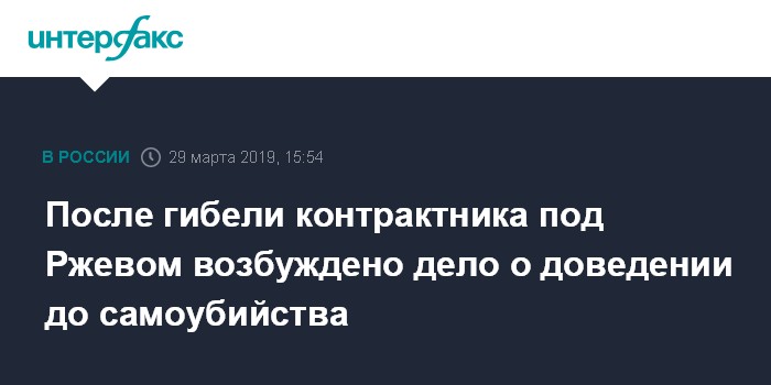 После гибели контрактника под Ржевом возбуждено дело о доведении до самоубийства