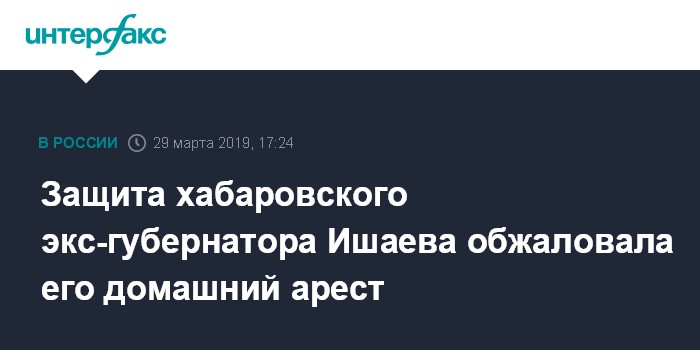 Москва. 29 марта. INTERFAX.RU - Защита подала жалобу в Мосгорсуд на решение о домашнем аресте бывшего губернатора Хабаровского края Виктора Ишаева, обвиняемого в мошенничестве.