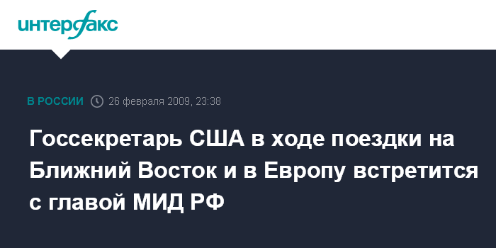 Госсекретарь США обсудит с С.Лавровым ряд вопросов, "представляющих взаимный интерес, включая возможности соглашения, заменяющего договор об СНВ и углубление сотрудничества в такой сфере как Афганистан".