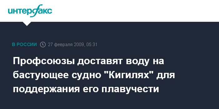 "Вечером в четверг в Камчатский профсоюз рыбаков обратились представители международного профсоюза транспортников с просьбой помочь бастующему экипажу судна "Кигилях" и пополнить запасы пресной воды на судне, - рассказал агентству профсоюзный лидер. - Мы зафрахтовали танкер "Сатурн", который в пятницу доставит воду на борт этого судна".