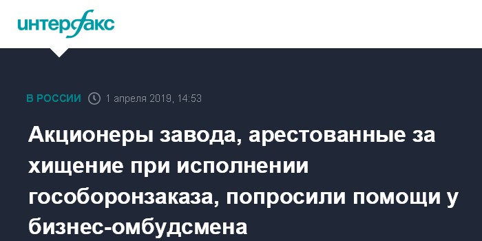 Акционеры завода, арестованные за хищение при исполнении гособоронзаказа, попросили помощи у бизнес-омбудсмена