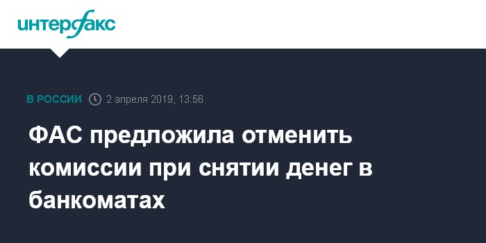 Москва. 2 апреля. INTERFAX.RU - Федеральная антимонопольная служба (ФАС) предлагает для борьбы с "зарплатным рабством" отменить комиссии за снятие средств в банкоматах не своего банка. Об этом сообщил замглавы ФАС Андрей Кашеваров на заседании Межрегионального банковского совета при Совете федерации.