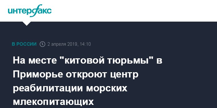 Москва. 2 апреля. INTERFAX.RU - Губернатор Приморья Олег Кожемяко заявил о создании Центра реабилитации для морских млекопитающих на месте "китовой тюрьмы" в бухте Средняя, где в настоящее время содержится около сотни косаток и белух.