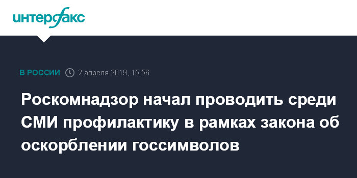 Роскомнадзор начал проводить среди СМИ профилактику в рамках закона об оскорблении госсимволов