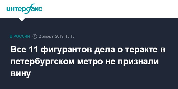 Москва. 2 апреля. INTERFAX.RU - Фигуранты дела о взрыве в метро Санкт-Петербурга в апреле 2017 года заявили в суде о своей невиновности.