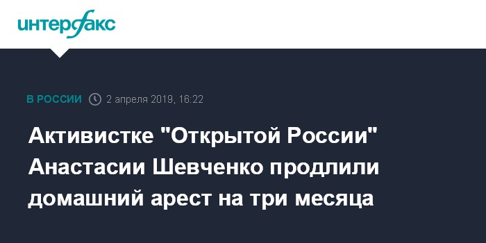 Москва. 2 апреля. INTERFAX.RU - Ростовский областной суд оставил прежней меру пресечения активистке "Открытой России" Анастасии Шевченко, обвиняемой в участии в деятельности нежелательной организации, сообщает пресс-служба суда.