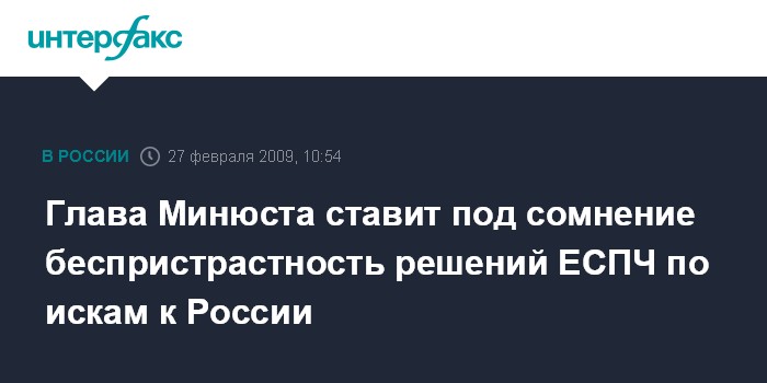 Москва. 27 февраля. INTERFAX.RU - Министр юстиции России Александр Коновалов назвал тенденциозными многие решения Европейского суда по правам человека (ЕСПЧ) по искам граждан к властям РФ. "Решения последних лет Европейского суда по правам человека дают серьезную почву для сомнений в беспристрастности и полной объективности Европейского суда", - заявил он в пятницу на коллегии Минюста.