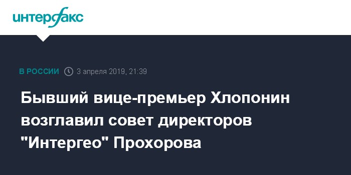 Бывший вице-премьер Хлопонин возглавил совет директоров "Интергео" Прохорова