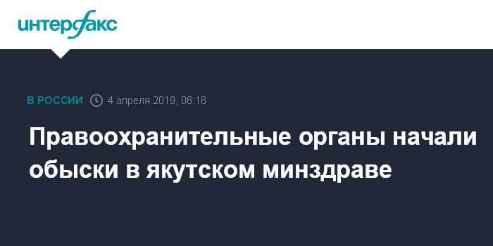 Москва. 4 апреля. INTERFAX.RU - Правоохранительные органы проводят обыски в здании министерства здравоохранения Якутии, сообщил "Интерфаксу" информированный источник.