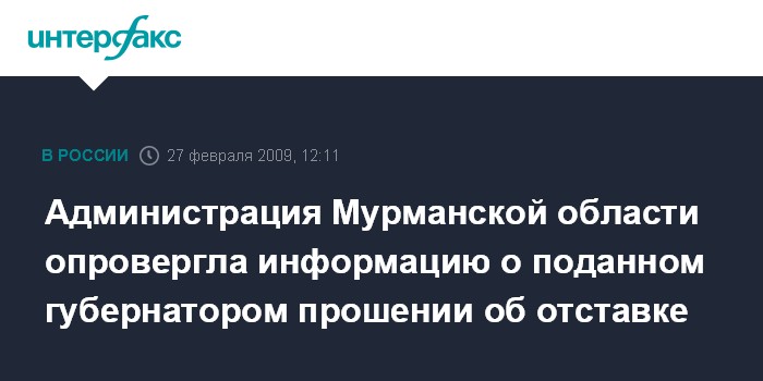 Москва. 27 февраля. INTERFAX.RU - Пресс-секретарь губернатора Мурманской области Николай Сигин опроверг появившуюся в СМИ информацию о том, что глава региона Юрий Евдокимов написал заявление об отставке.