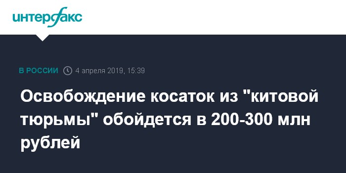 Отловщики белух и косаток из "китовой тюрьмы" признались, что поймали их для зарубежных океанариумовЧитать подробнееПо словам Бизикова, цена обусловлена тем, что выпуск косаток и белух на волю - уникальная по сложности и масштабу операция.