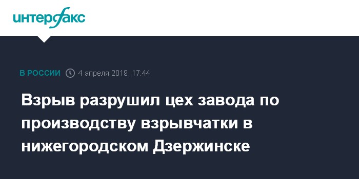 Взрыв разрушил цех завода по производству взрывчатки в нижегородском Дзержинске