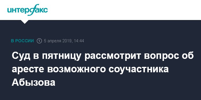 Суд в пятницу рассмотрит вопрос об аресте возможного соучастника Абызова