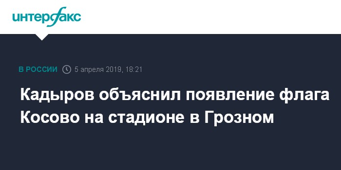 Москва. 5 апреля. INTERFAX.RU - Глава Чечни Рамзан Кадыров отрицает политическую подоплеку появления флага Косово на стадионе "Ахмат Арена".
