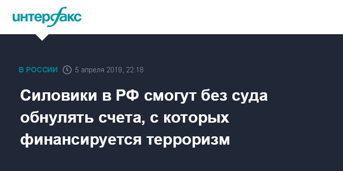 Силовики в РФ смогут без суда обнулять счета, с которых финансируется терроризм