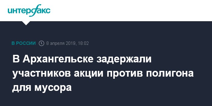 Москва. 8 апреля. INTERFAX.RU - В Архангельске задержаны участники несанкционированной воскресной акции протеста против строительства полигона для мусора; об этом в понедельник сообщают организаторы митинга.