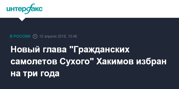 Новый глава "Гражданских самолетов Сухого" Хакимов избран на три года