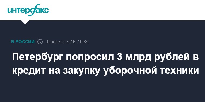 Москва. 10 апреля. INTERFAX.RU - Власти Петербурга попросили у правительства РФ льготные кредиты на покупку уборочной техники; об этом в среду рассказал врио губернатора Александр Беглов на встрече с Владимиром Путиным.