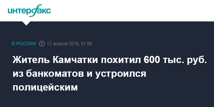 Житель Камчатки похитил 600 тыс. руб. из банкоматов и устроился полицейским
