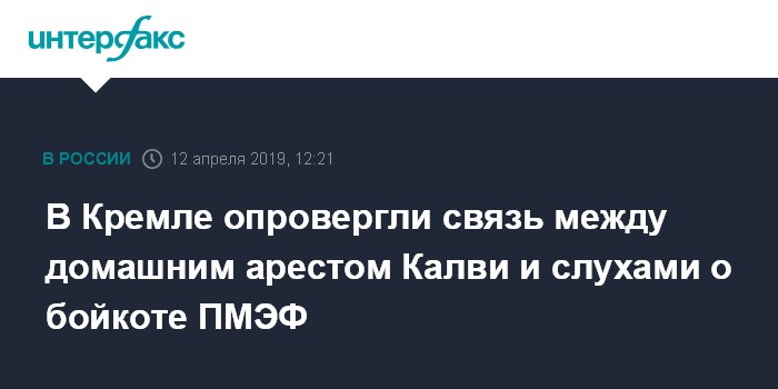 В Кремле опровергли связь между домашним арестом Калви и слухами о бойкоте ПМЭФ