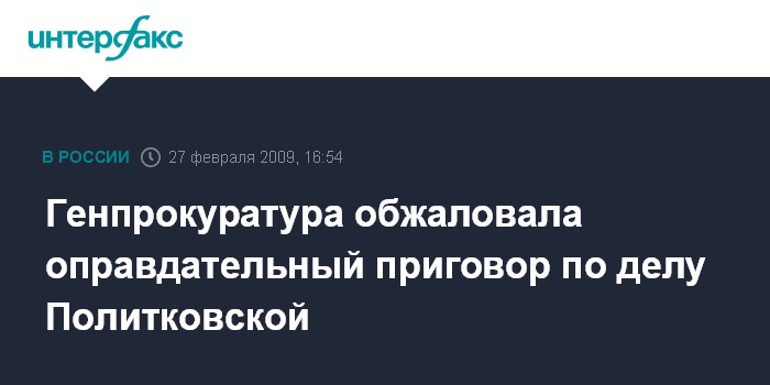 Москва. 27 февраля. INTERFAX.RU - Генпрокуратура РФ обжаловала оправдательный приговор по делу об убийстве обозревателя "Новой газеты" Анны Политковской, сообщил адвокат одного из оправданных по этому делу Мурад Мусаев.