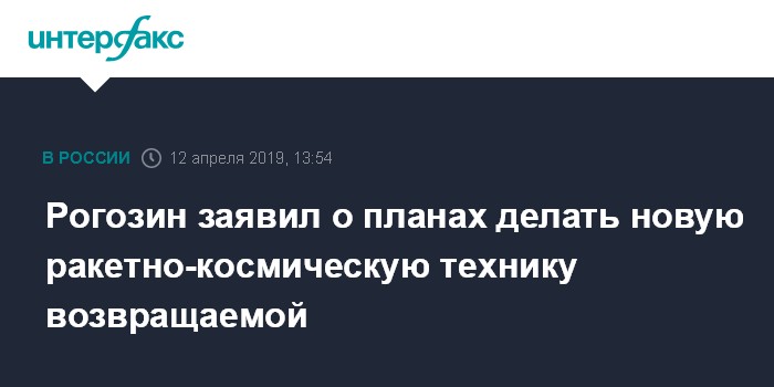 Москва. 12 апреля. INTERFAX.RU - Вся новая российская ракетно-космическая техника задумывается как возвращаемая, сообщил журналистам глава госкорпорации Дмитрий Рогозин на "НПО Энергомаш" в пятницу.