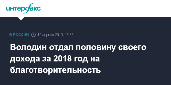 Володин отдал половину своего дохода за 2018 год на благотворительность