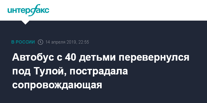 Ранее информированный источник сообщил "Интерфаксу", что авария произошла в Ленинском районе Тульской области. "Экскурсионный автобус с детьми, следовавший из Рязани в Орел, съехал в кювет и перевернулся", - сказал он.