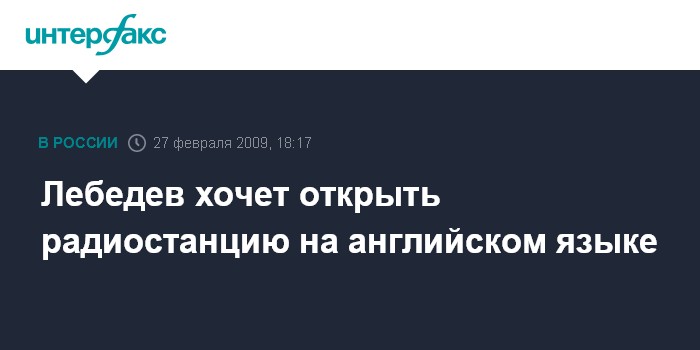 Москва. 27 февраля. INTERFAX.RU - Российский предприниматель, глава холдинга "Новые Медиа" Александр Лебедев намерен в конце весны учредить радиостанцию для вещания на английском языке.