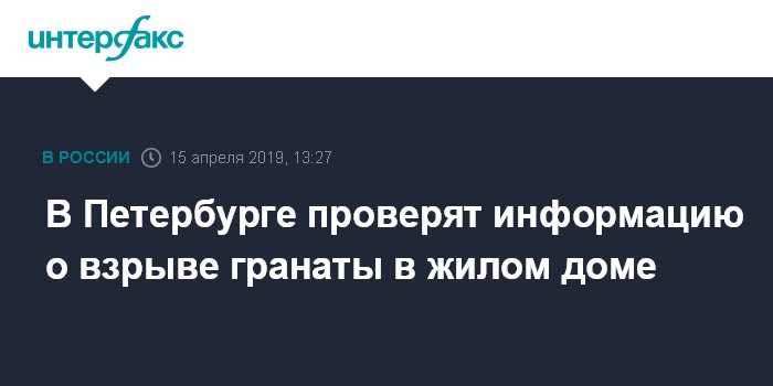 Москва. 15 апреля. INTERFAX.RU - В Петербурге проверяют информацию о взрыве гранаты в жилом доме, сообщил "Интерфаксу" источник в экстренных службах.